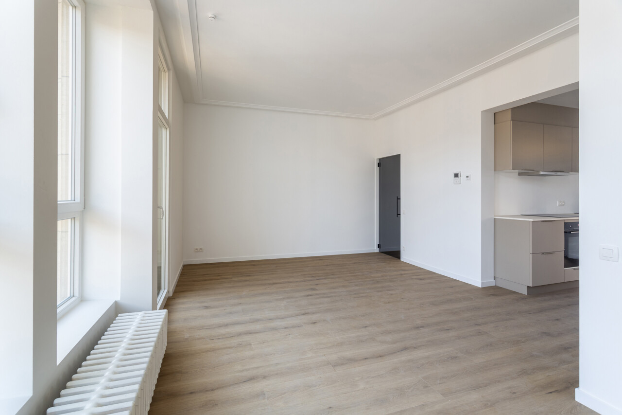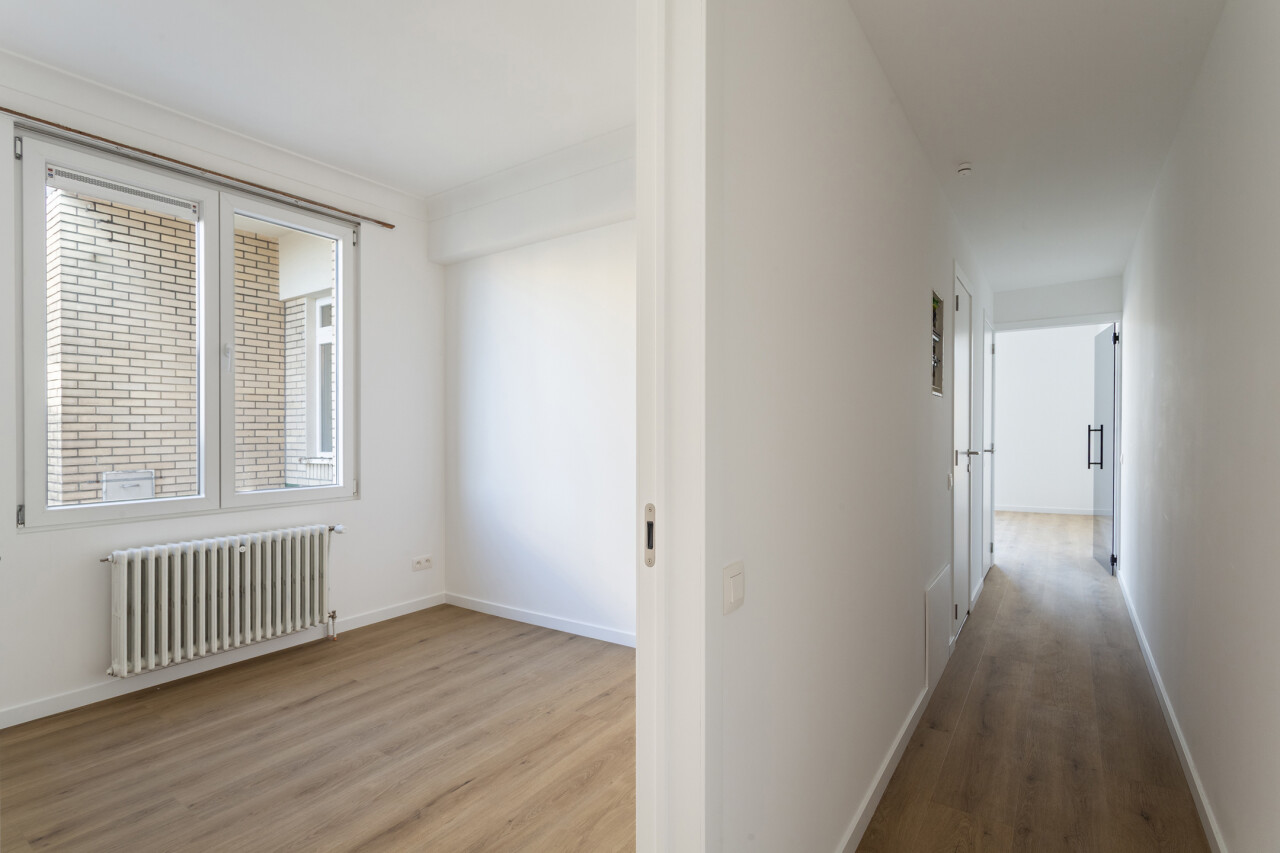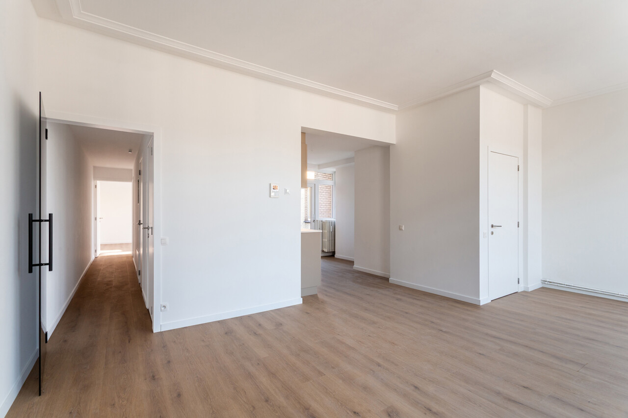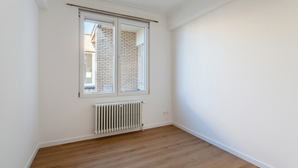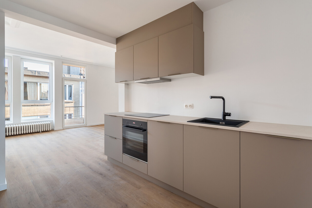 Volledig gerenoveerd appartement van ca. 79 m², gelegen in de Seefhoek en ingedeeld als volgt: inkomhal, woonruimte met brede raampartij en hoge plafonds en met open ingerichte keuken en terrasje van ca. 2,3 m². Verder nachthal met gastentoilet, douchekamer met cv en twee slaapkamers (16 en 9 m²). Ondergronds privatieve berging. Dit appartement maakt deel uit van een gebouw met zes appartementen (nog alle zes te koop, allen dezelfde prijs) en een handelsruimte op het gelijkvloers (eveneens te koop).. B-label. Asbestvrij. Beschikbaar bij akte. Vg, gdv, gvv, gvkr, wg.