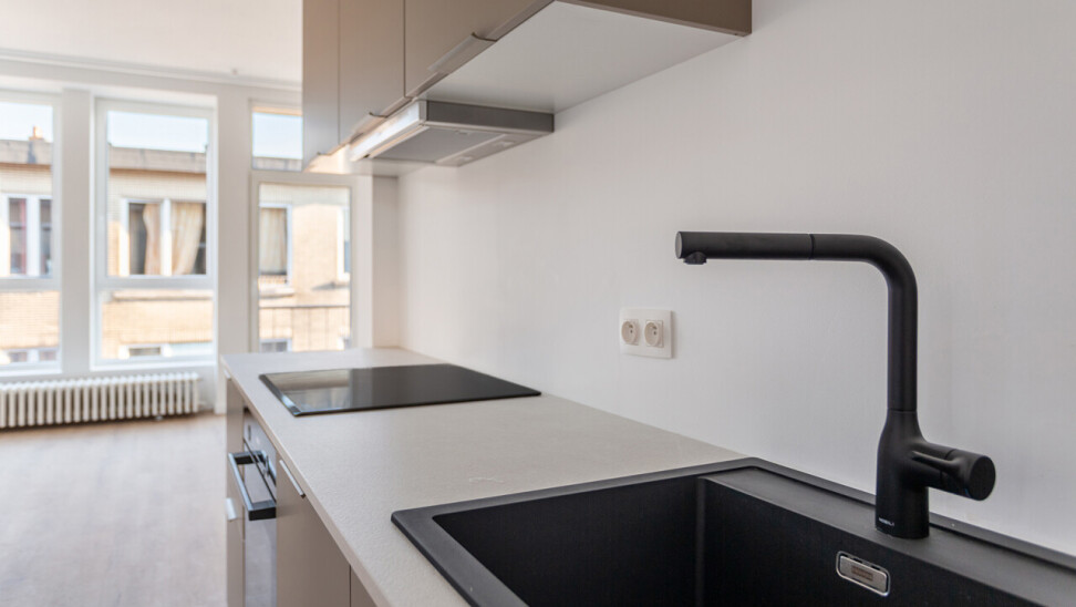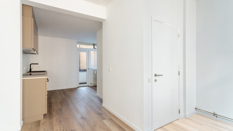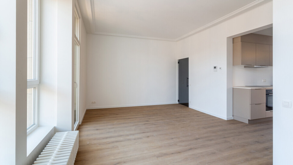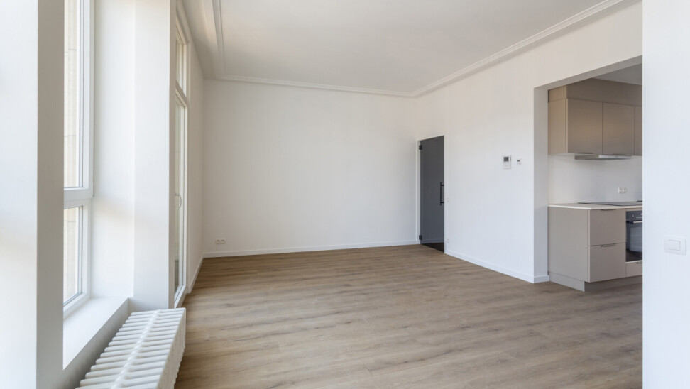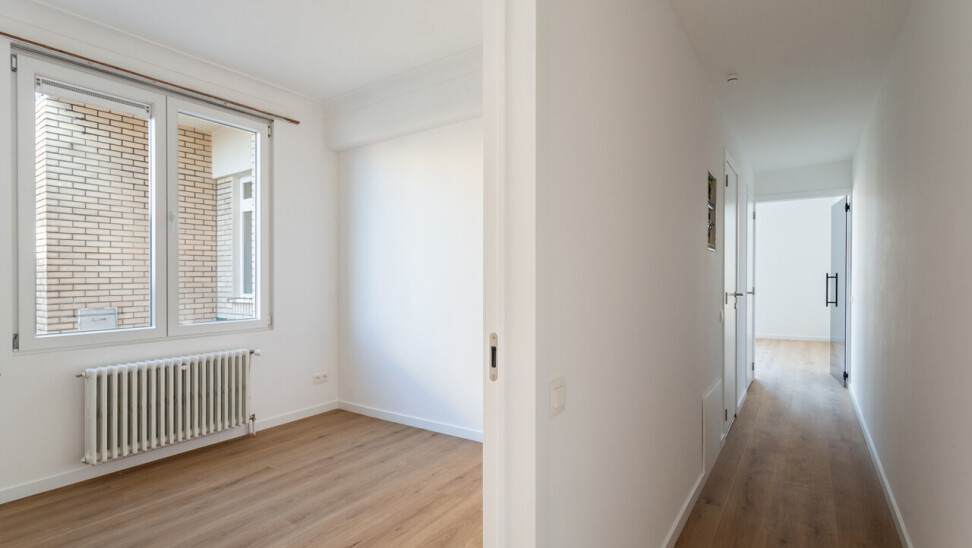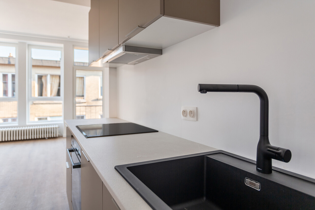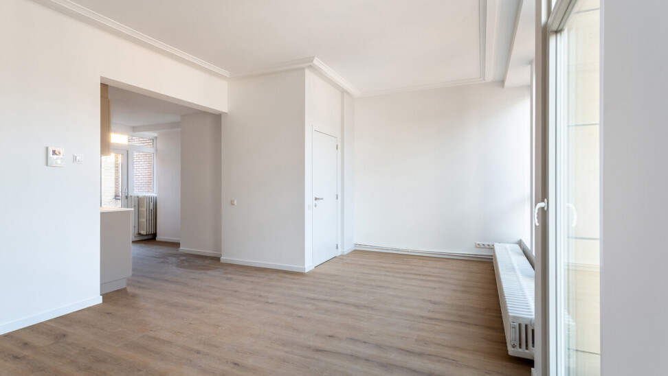 Volledig gerenoveerd appartement van ca. 79 m², gelegen in de Seefhoek en ingedeeld als volgt: inkomhal, woonruimte met brede raampartij en hoge plafonds en met open ingerichte keuken en terrasje van ca. 2,3 m². Verder nachthal met gastentoilet, douchekamer met cv en twee slaapkamers (16 en 9 m²). Ondergronds privatieve berging. Dit appartement maakt deel uit van een gebouw met zes appartementen (nog alle zes te koop, allen dezelfde prijs) en een handelsruimte op het gelijkvloers (eveneens te koop).. B-label. Asbestvrij. Beschikbaar bij akte. Vg, gdv, gvv, gvkr, wg.