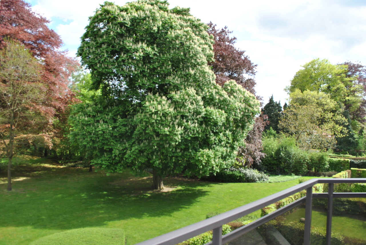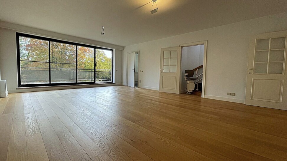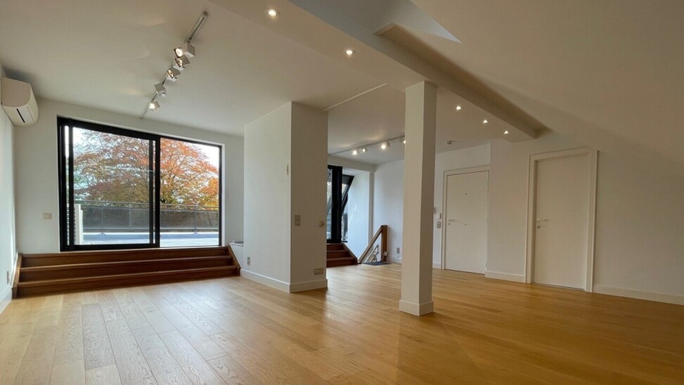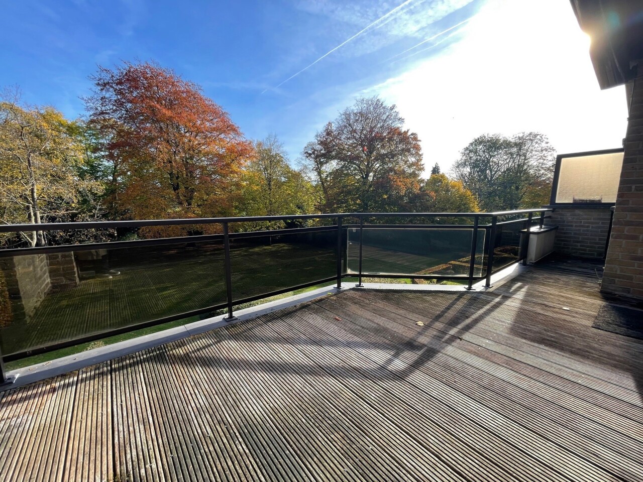 Prachtig duplex appartement van ca. 162 m² met twee terrassen van resp. 10 m² (zuid-oost) en 55 m² (zuid). Het appartement maakt deel uit van een goed beheerde residentie temidden van een parkdomein van 5783 m². De hal geeft uit op een ruime woonkamer op parket met kamerbrede raampartij en terras met zicht op de parktuin en het eerste terras van 10 m². Naastgelegen klassieke witte keuken met alle vernieuwde toestellen en berging/wasplaats. Verder hal met gastentoilet, en handenwasser, twee slaapkamers op parket en badkamer met ligbad, douche, toilet en dubbel lavabomeubel. In de woonkamer is een toegangsdeur met trap naar de bovengelegen verdieping (momenteel voorzien van traplift). Deze bestaat uit één lichte open ruimte (vergelijkbaar met een studio) met eveneens aparte ingang naar de traphal, en een aparte badkamer met douche, lavabomeubel, toilet en aansluiting voor wasmachine. Bovendien zijn op deze verdieping extra aansluitingen voor tweede keuken, of bad. Deze ruimte heeft ook vloerverwarming doch tevens een een airco/inverter die ook als verwarming kan gebruikt worden (warme/koude lucht). Aansluitend via kamerbrede raampartij bereikbaar een zuidgericht dakterras van ca. 55 m² waar u de hele dag zon heeft. De residentie is ideaal gelegen in een zeer rustige eenrichtingsstraat nabij de oude dorpskern van Schilde (aan de kerk). Ook is er nog een gemeenschappelijke fietsenberging. Alle ruimten zijn op eiken parket behoudens inkomhal, keuken, berging, badkamers en toilet die een tegelvloer hebben. In het aanbod is één ruime staanplaats en ondergrondse berging inbegrepen. In goede staat van onderhoud en instapklaar of naar smaak te moderniseren. Vg, gvkr, gvv, gdv, wg. Epc 259 kWh/m² oftewel label C (makkelijk te verlagen door het vernieuwen van de schuifpuien). Maandelijkse koste gemene delen 440 euro (hierin zit begrepen het onderhoud van het gemeenschappelijke parkdomein dat toegankelijk is voor iedereen).