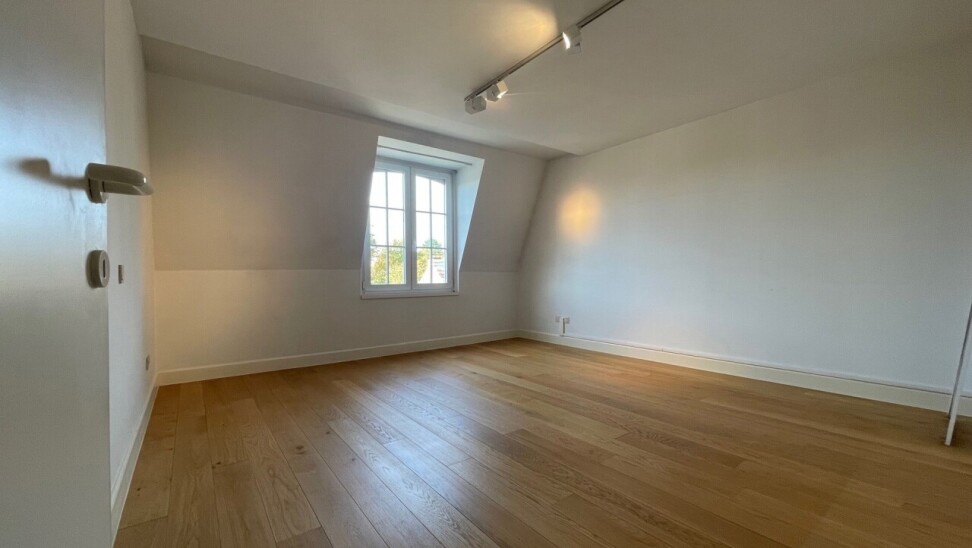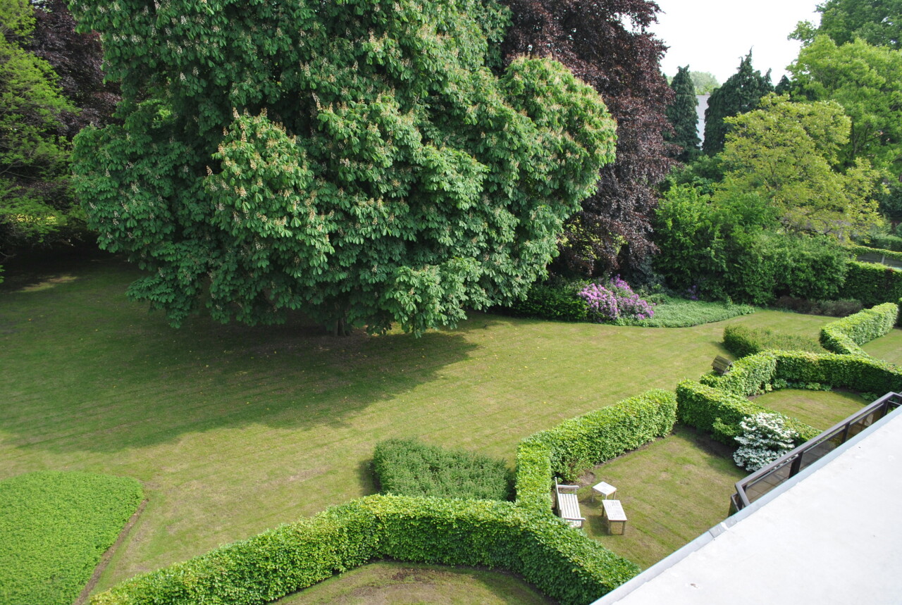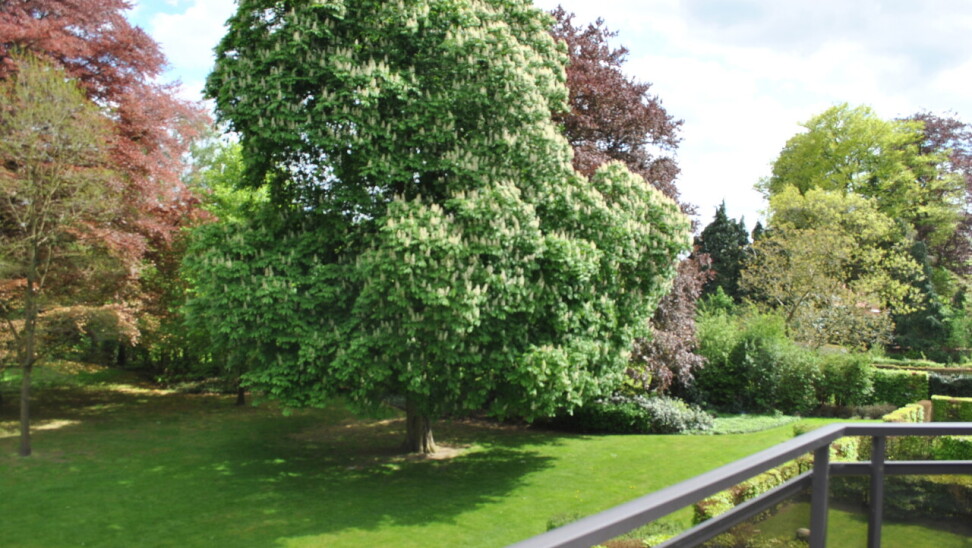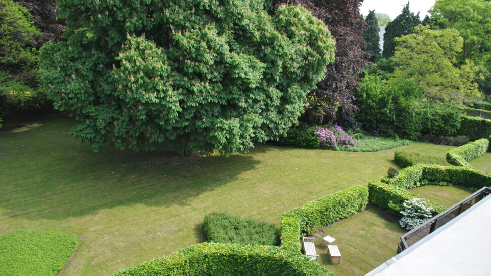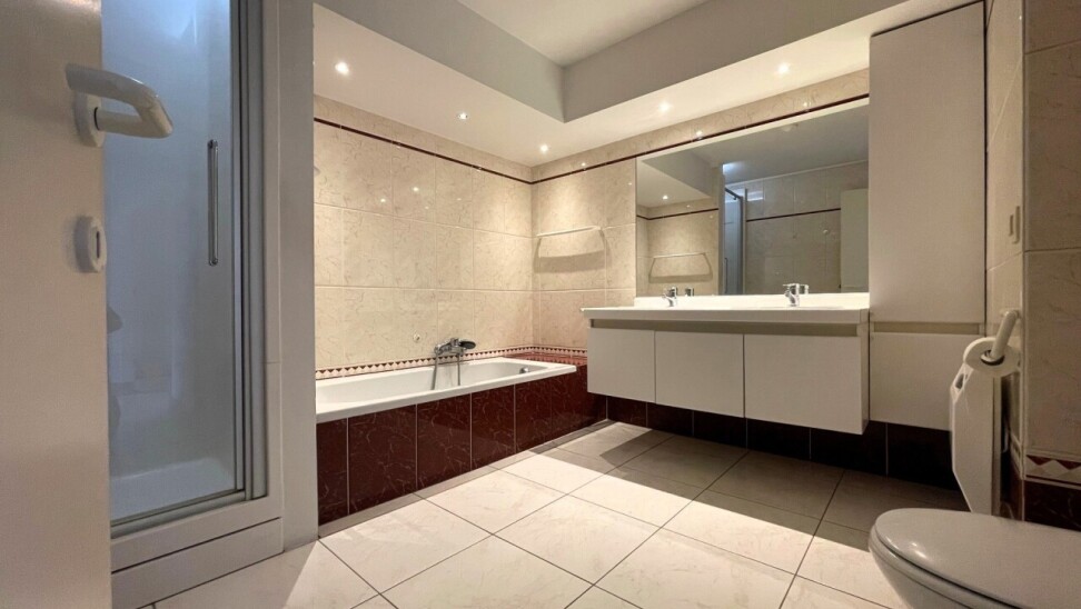 Prachtig duplex appartement van ca. 162 m² met twee terrassen van resp. 10 m² (zuid-oost) en 55 m² (zuid). Het appartement maakt deel uit van een goed beheerde residentie temidden van een parkdomein van 5783 m². De hal geeft uit op een ruime woonkamer op parket met kamerbrede raampartij en terras met zicht op de parktuin en het eerste terras van 10 m². Naastgelegen klassieke witte keuken met alle vernieuwde toestellen en berging/wasplaats. Verder hal met gastentoilet, en handenwasser, twee slaapkamers op parket en badkamer met ligbad, douche, toilet en dubbel lavabomeubel. In de woonkamer is een toegangsdeur met trap naar de bovengelegen verdieping (momenteel voorzien van traplift). Deze bestaat uit één lichte open ruimte (vergelijkbaar met een studio) met eveneens aparte ingang naar de traphal, en een aparte badkamer met douche, lavabomeubel, toilet en aansluiting voor wasmachine. Bovendien zijn op deze verdieping extra aansluitingen voor tweede keuken, of bad. Deze ruimte heeft ook vloerverwarming doch tevens een een airco/inverter die ook als verwarming kan gebruikt worden (warme/koude lucht). Aansluitend via kamerbrede raampartij bereikbaar een zuidgericht dakterras van ca. 55 m² waar u de hele dag zon heeft. De residentie is ideaal gelegen in een zeer rustige eenrichtingsstraat nabij de oude dorpskern van Schilde (aan de kerk). Ook is er nog een gemeenschappelijke fietsenberging. Alle ruimten zijn op eiken parket behoudens inkomhal, keuken, berging, badkamers en toilet die een tegelvloer hebben. In het aanbod is één ruime staanplaats en ondergrondse berging inbegrepen. In goede staat van onderhoud en instapklaar of naar smaak te moderniseren. Vg, gvkr, gvv, gdv, wg. Epc 259 kWh/m² oftewel label C (makkelijk te verlagen door het vernieuwen van de schuifpuien). Maandelijkse koste gemene delen 440 euro (hierin zit begrepen het onderhoud van het gemeenschappelijke parkdomein dat toegankelijk is voor iedereen).